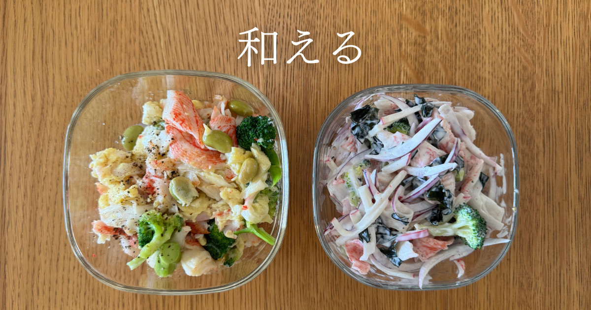 「和える」は、食材と調味料を組み合わせ、味をからませる調理方法。それぞれの特徴を活かしながら、調和させる。